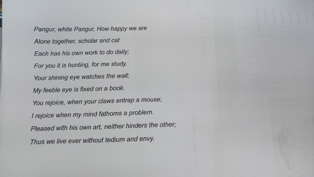 關於 Pangur Ban 的意義和詩歌 __ by Peggy